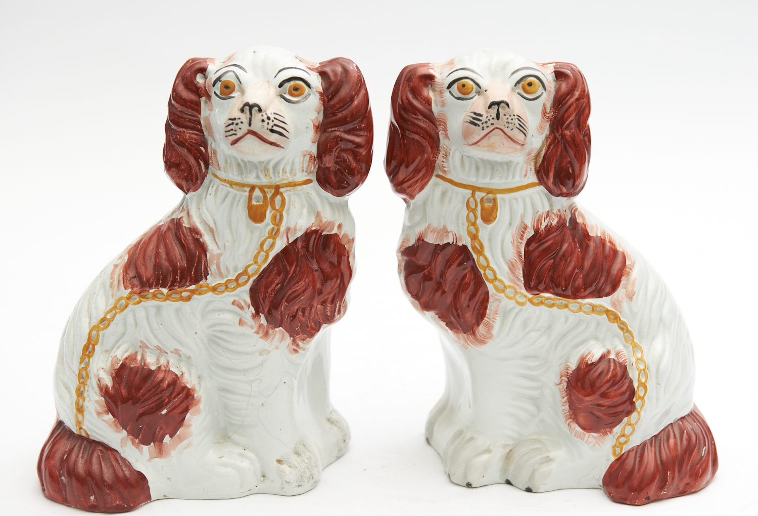 A PAIR OF STAFFORDSHIRE DOGS (25 CM H) (A/F), LEONARD JOEL LOCAL DELIVERY SIZE: SMALL