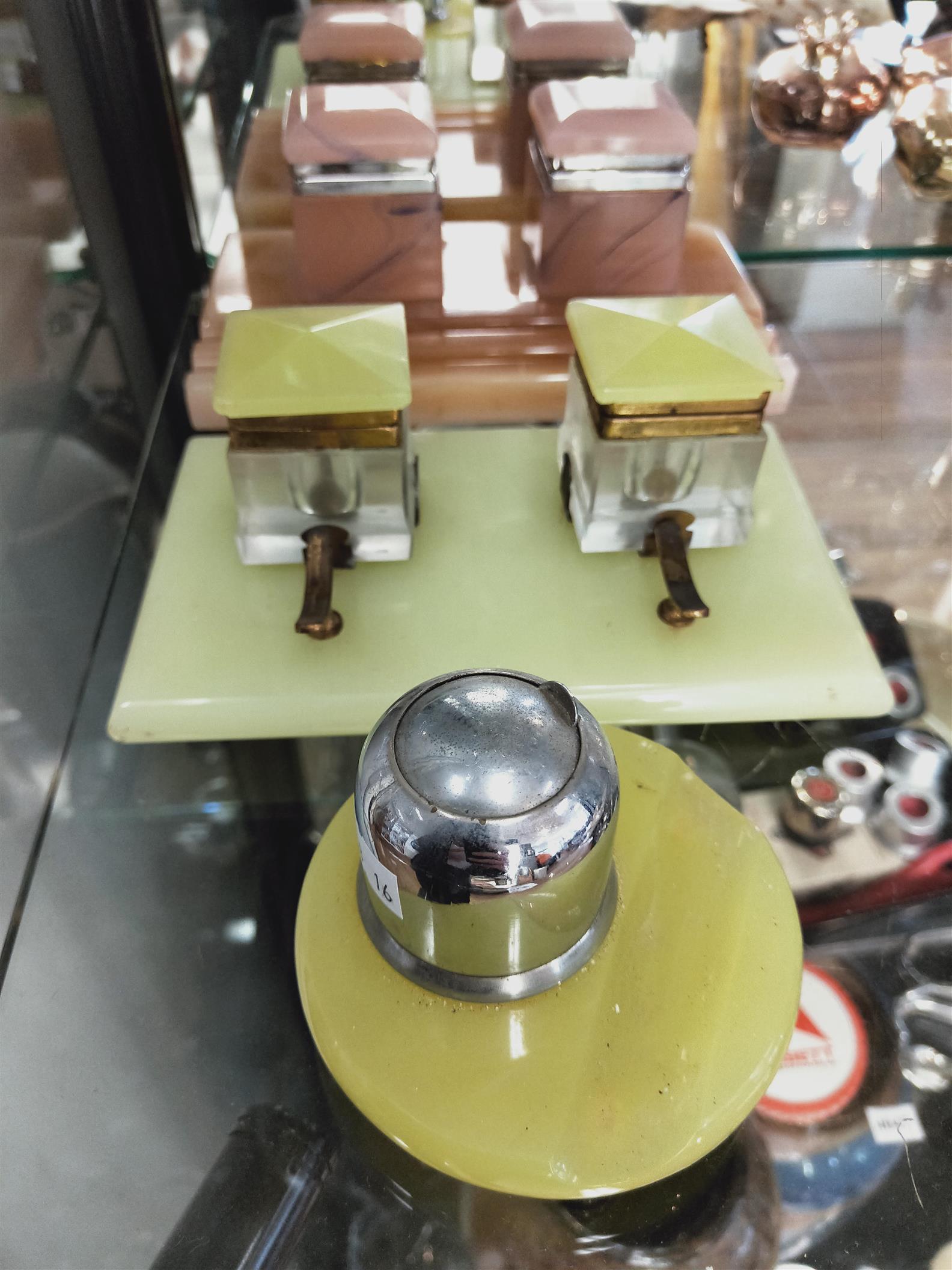 A GROUP OF THREE ART DECO INKWELLS (A/F), LEONARD JOEL LOCAL DELIVERY SIZE: SMALL