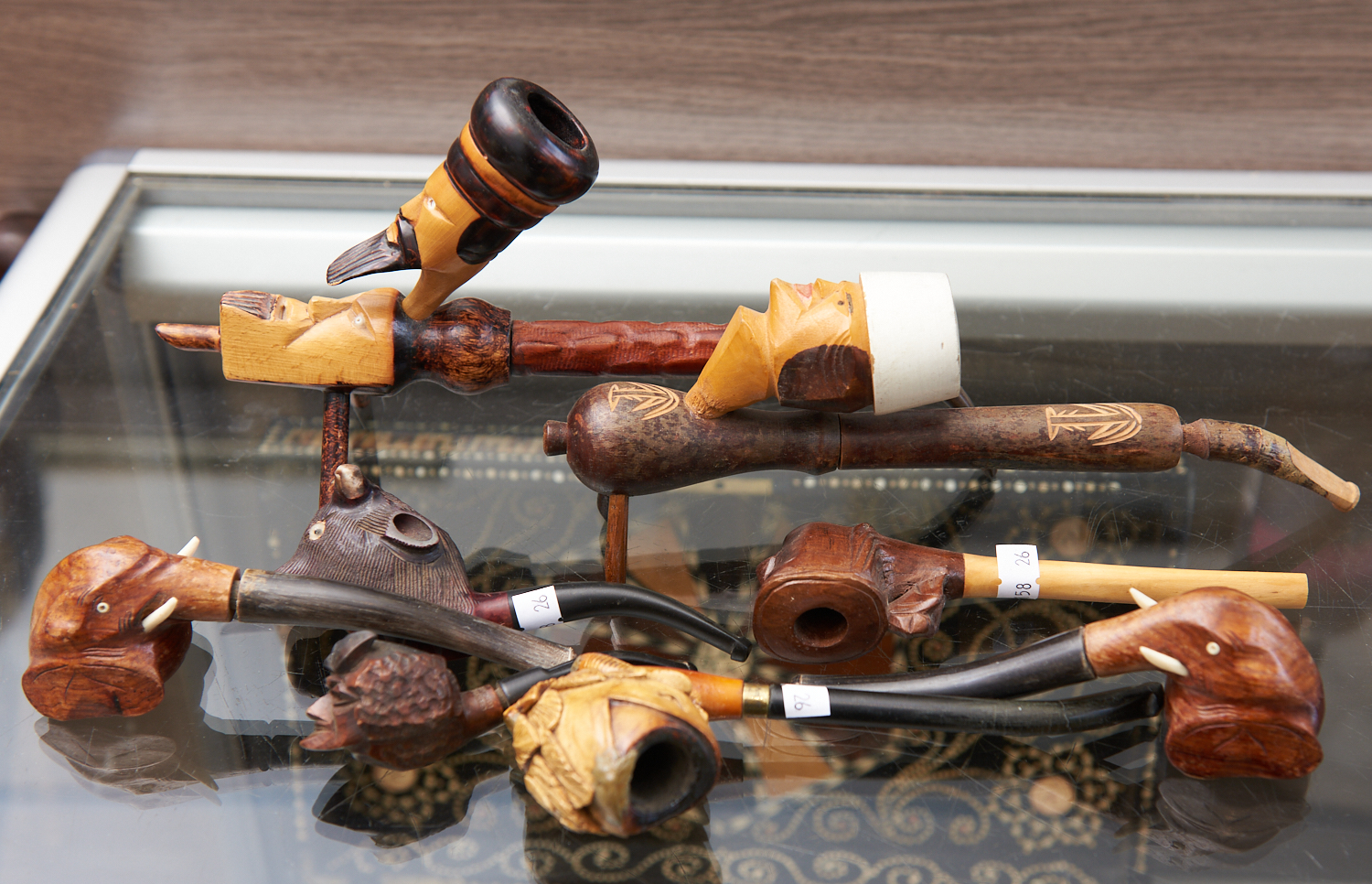 A GROUP OF EIGHT FIGURAL PIPES H.26CM, LEONARD JOEL LOCAL DELIVERY SIZE: SMALL