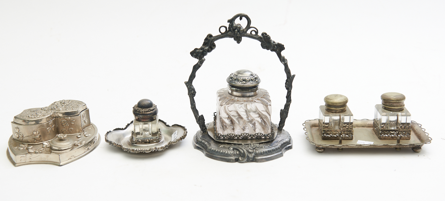 A GROUP OF EMBOSSED SILVER PLATED INKWELLS, LEONARD JOEL LOCAL DELIVERY SIZE: SMALL