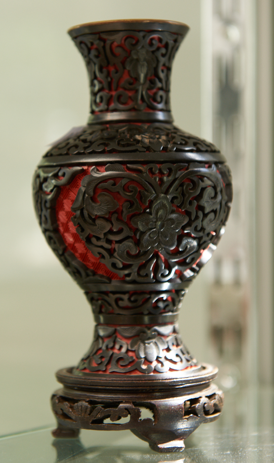 A CINNABAR STYLE CHINESE VASE H.18CM, LEONARD JOEL LOCAL DELIVERY SIZE: SMALL