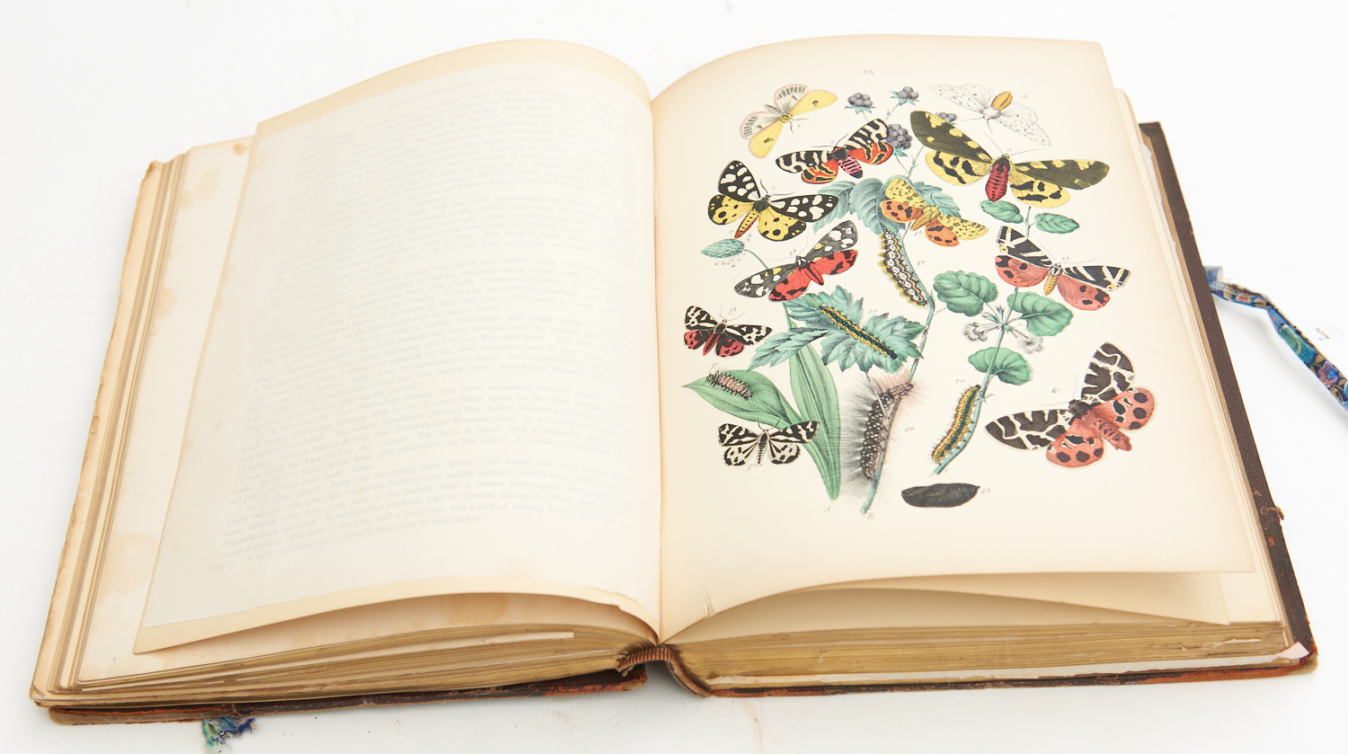 EUROPEAN BUTTERFLIES AND MOTHS WITH 61 COLOURED PLATES (SOME MISSING) BASED UPON BERGE'S "SCHMETTERLINGBUCH" BY W.F. KIRBY, PUBLISHED BY CASSELL, PETTER, GALPIN & CO, LONDON 1882 (A/F), LEONARD JOEL LOCAL DELIVERY SIZE: SMALL
