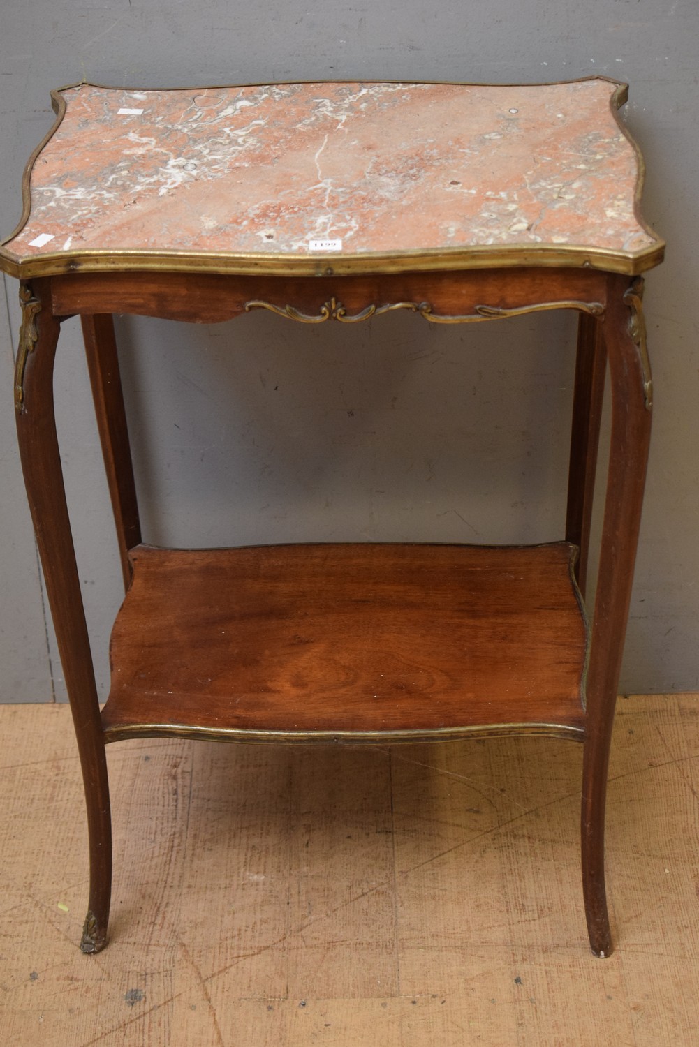 A TWO TIERED MARBLE TOPPED SIDE TABLE (A/F) (H74 X W53 X D38 CM) (LEONARD JOEL DELIVERY SIZE: MEDIUM)