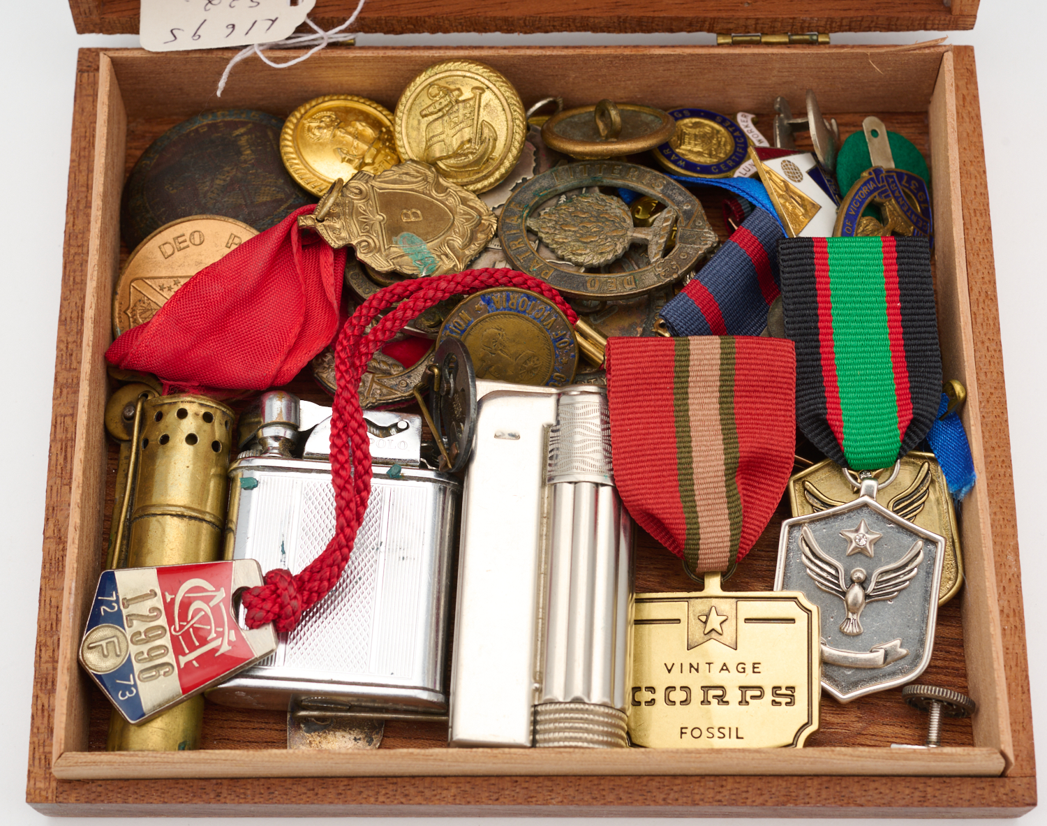 A COLLECTION OF MISCELLANEOUS TOKENS, MEDALS AND MEDALLIONS BELONGING TO THE ESTATE OF RODNEY PERMEZEL, INCLUDING AN AUSTRALIAN ANNIVERSARY OF NATIONAL SERVICE MEDALLION, A VINTAGE SWEDEN SERVICE SOUVENIR MEDALLION BY VERA FERNGREN, STOKES & SONS MELBOURNE, WALLACE BISHOP BRISBANE MEDALLIONS, PITCHER MELBOURNE, PRESBYTERIAN CHURCH OF VICTORIA, GOOD ROADS ASSOCIATION OF VICTORIA, 1887 QUEENS JUBILEE COIN, AN AUSTRALIAN ROYAL AIR FORCE PIN AND AN AUSTRALIAN COMMONWEALTH MILITARY FORCES PIN AND THREE VINTAGE LIGHTERS.