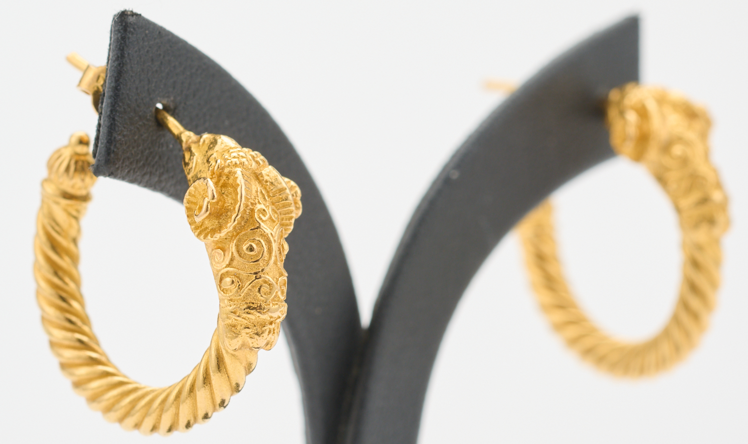 A PAIR OF RAMS HEAD EARRINGS IN 22CT GOLD, BY NUSRET