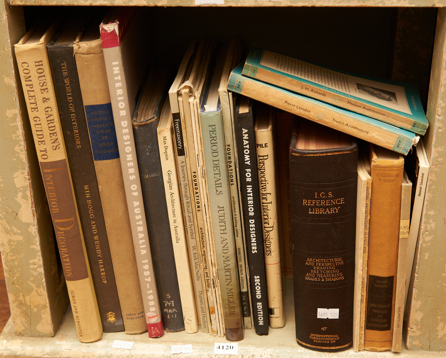 A SHELF OF BOOKS PERTAINING TO ARCHITECTURAL HISTORY. The estate of Rodney Permezel