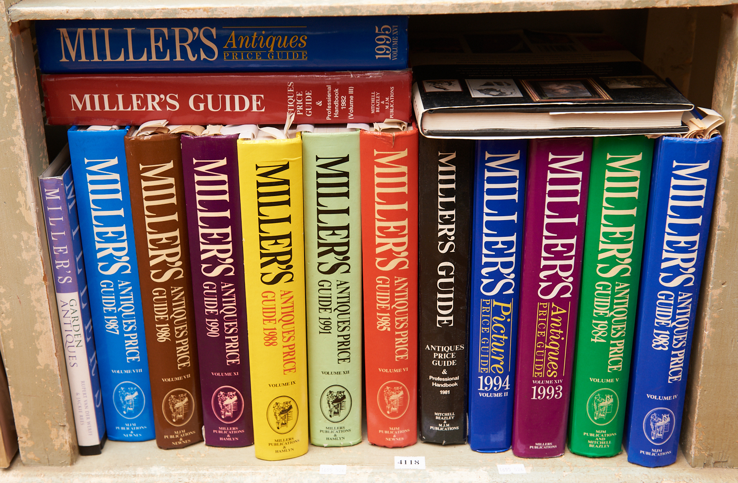A SHELF OF BOOKS COMPRISING MILLER'S ANTIQUE PRICE GUIDES. The estate of Rodney Permezel