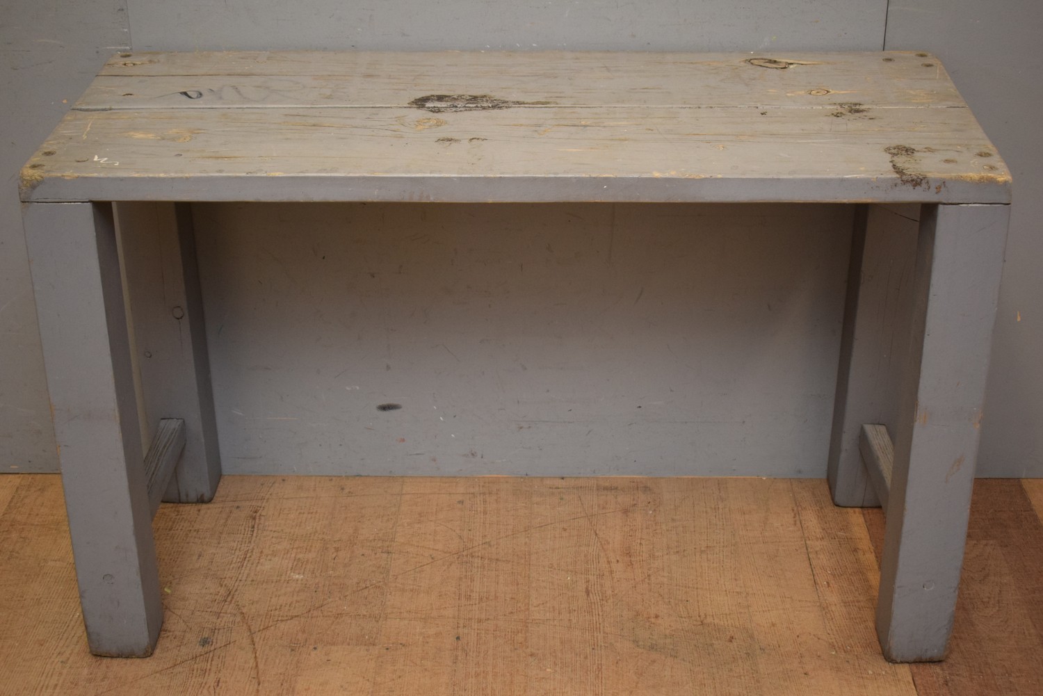A PAINTED WORKMAN'S TABLE - HAND PAINTED IN GUNSHIP GREY (A/F) (H73 X W120 X D49 CM) (LEONARD JOEL DELIVERY SIZE: LARGE)