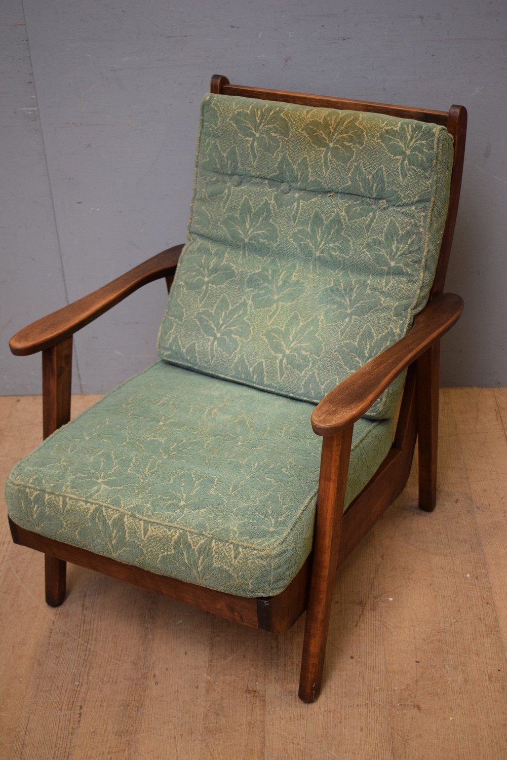 A MID CENTURY ARMCHIR (A/F) (H83 X W64 X D83 CM) (LEONARD JOEL DELIVERY SIZE: LARGE)