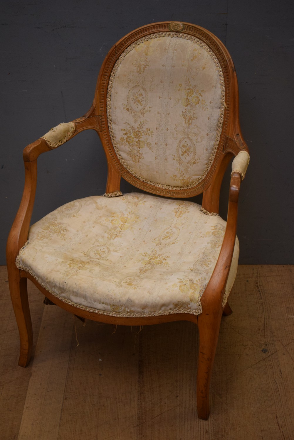 A LOUIS XVI STYLE FAUTEUIL, 18TH CENTURY (A/F) (H95 X W63 X D63 CM) (LEONARD JOEL DELIVERY SIZE: MEDIUM) The Estate of Rodney Permezel.