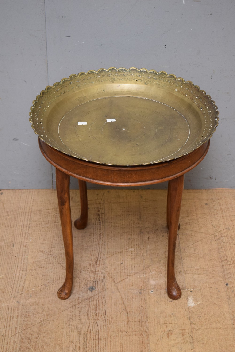 A SIDE TABLE WITH BRASS TOP (A/F) (47H x 46D CM)(LEONARD JOEL DELIVERY SIZE: MEDIUM) The Estate of Rodney Permezel.
