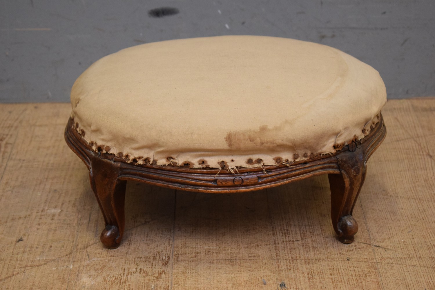 A VICTORIAN SMALL UPHOLSTERED FOOT REST (A/F) (16H x 32D CM) (LEONARD JOEL DELIVERY SIZE: SMALL) The Estate of Rodney Permezel.