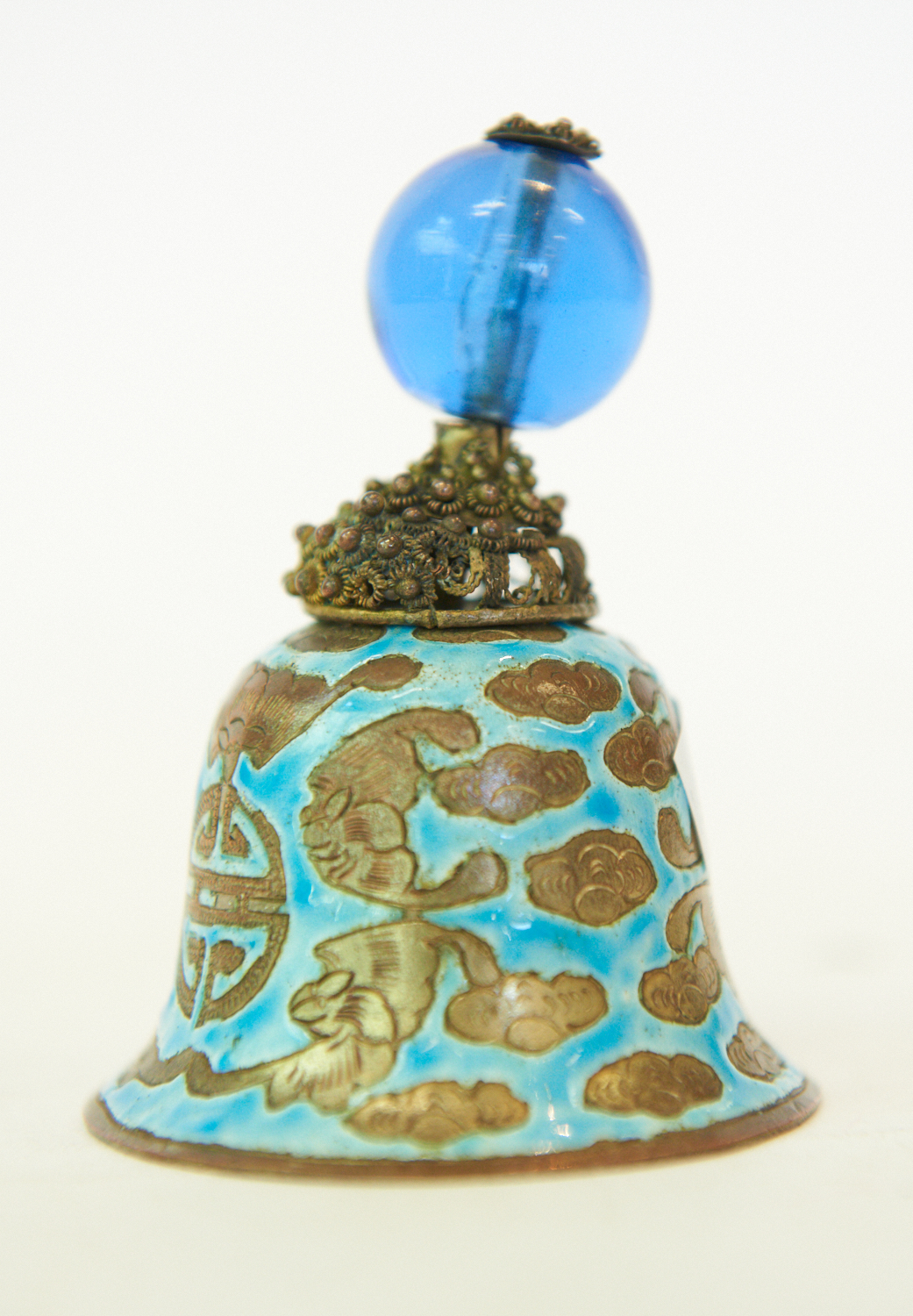 A CHINESE BEIJING/PEKING GLASS MANDARIN HAT BEAD MOUNTED ON A BELL, LEONARD JOEL LOCAL DELIVERY SIZE: SMALL