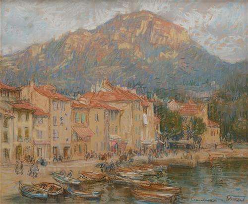DORRIT BLACK (1891-1951) The Castle, Taormina c.1928-29 colour linocut on cream wove paper, printed from five blocks in yellow ochre...