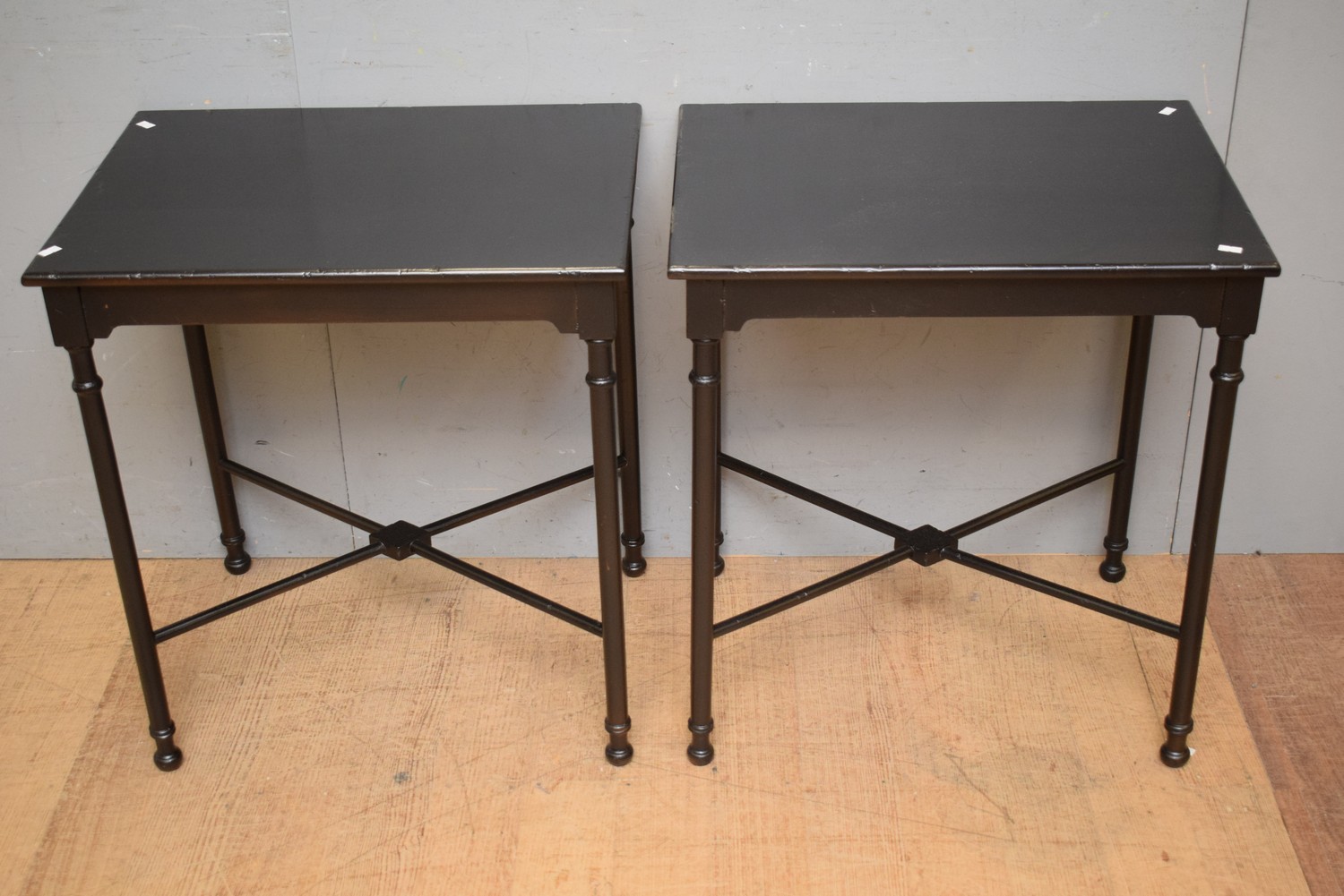 TWO ENGLISH GEORGE III STYLE SIDE TABLES IN EBONISED FINISH (H65 X W60 X D45 CM) (LEONARD JOEL DELIVERY SIZE: MEDIUM)