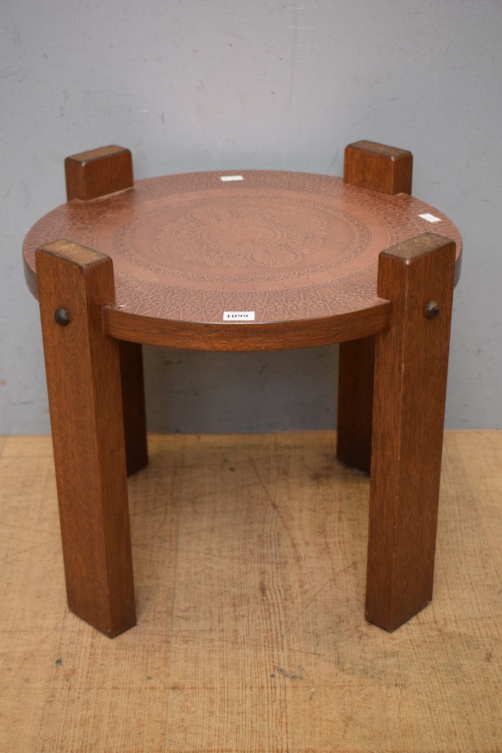 A TIMBER SIDE TABLE WITH EMBOSSED TOP (37H x 43D CM) (LEONARD JOEL DELIVERY SIZE: MEDIUM)