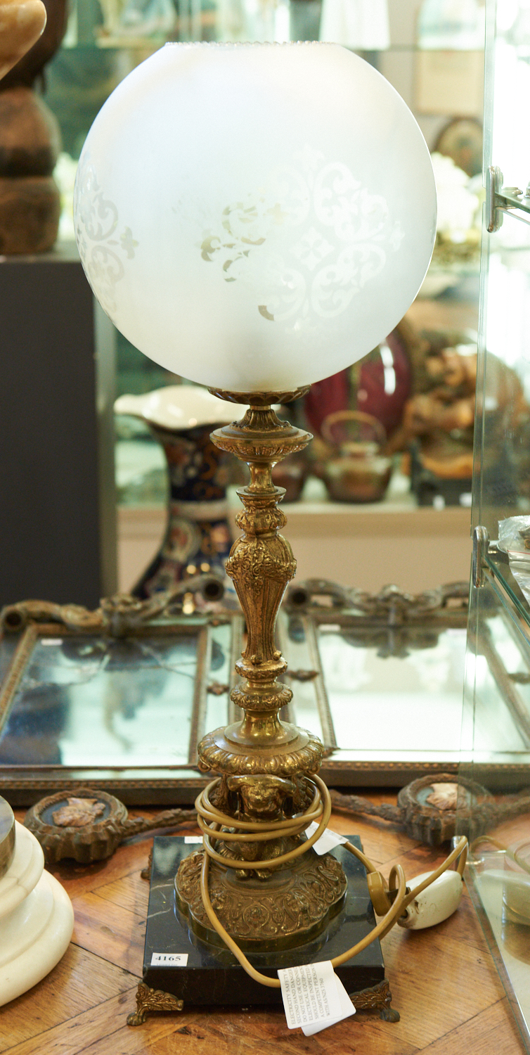 A MARBLE AND BRASS BASE LAMP (67 CM H), LEONARD JOEL LOCAL DELIVERY SIZE: SMALL
