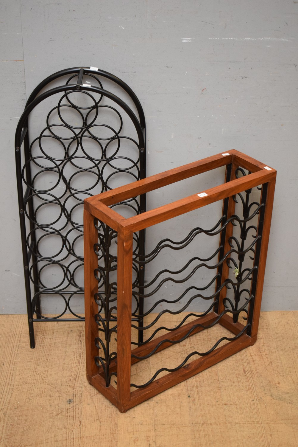 TWO WINE RACKS (LARGEST 91H x 38W x 17D CM) (LEONARD JOEL DELIVERY SIZE: MEDIUM)