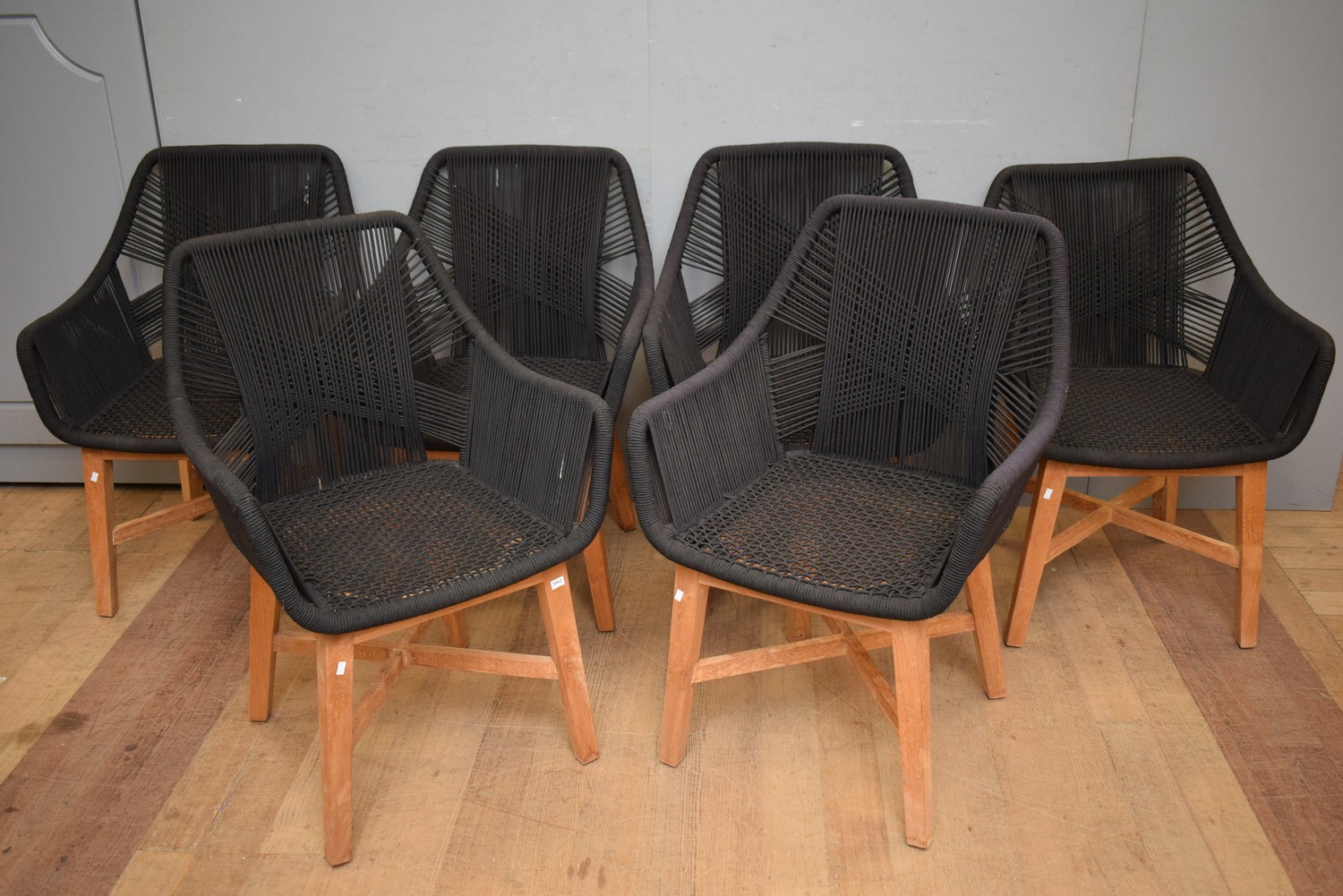 SIX TEAK AND ROPE DINING CHAIRS (A/F) (95H x 66W x 71D CM) (PLEASE NOTE THIS HEAVY ITEM MUST BE REMOVED BY CARRIERS AT THE CUSTOMER'S EXPENSE. LEONARD JOEL STAFF CANNOT ASSIST CARRYING THIS ITEM) (X-LARGE ITEM)