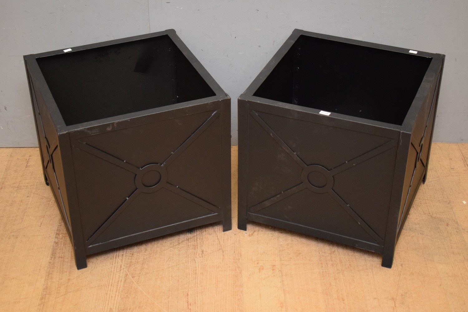 A PAIR OF METAL STRAP PLANTER BOXES (44H x 46W x 46D CM) (LEONARD JOEL DELIVERY SIZE: LARGE)