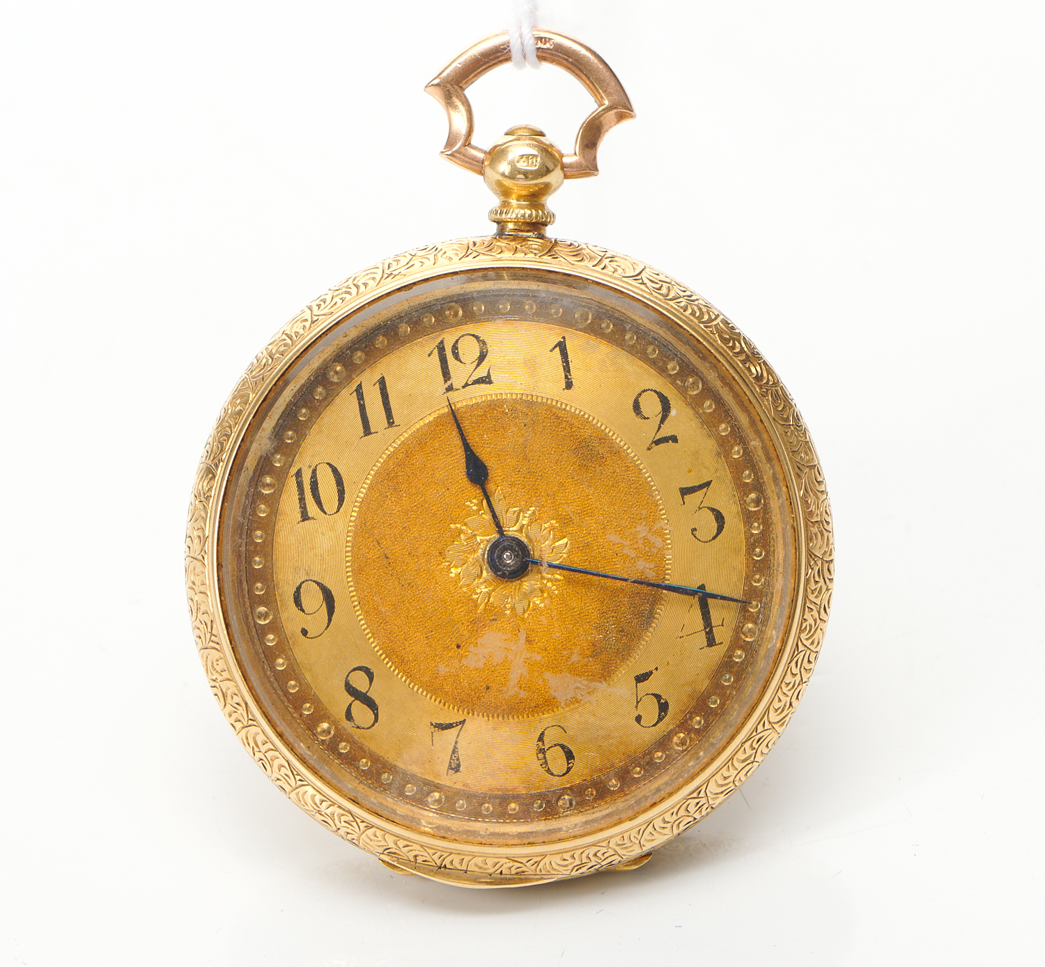 A MIDSIZE POCKET WATCH IN 18CT GOLD, DIAMETER 35MM, 34.4GMS