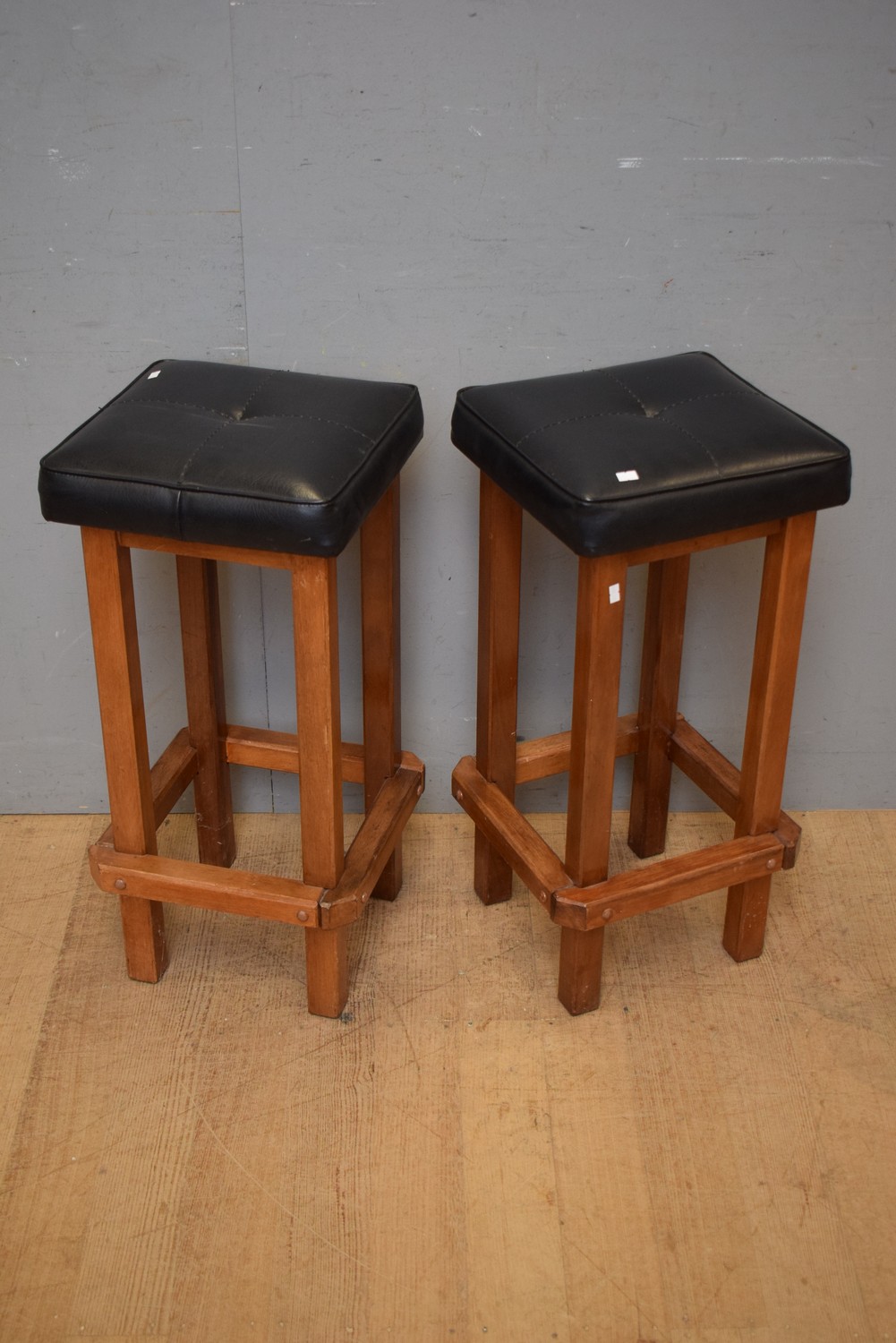 A PAIR OF VINTAGE BLACK VINYL STOOLS (76H x 37W x 37D CM) (LEONARD JOEL DELIVERY SIZE: LARGE)