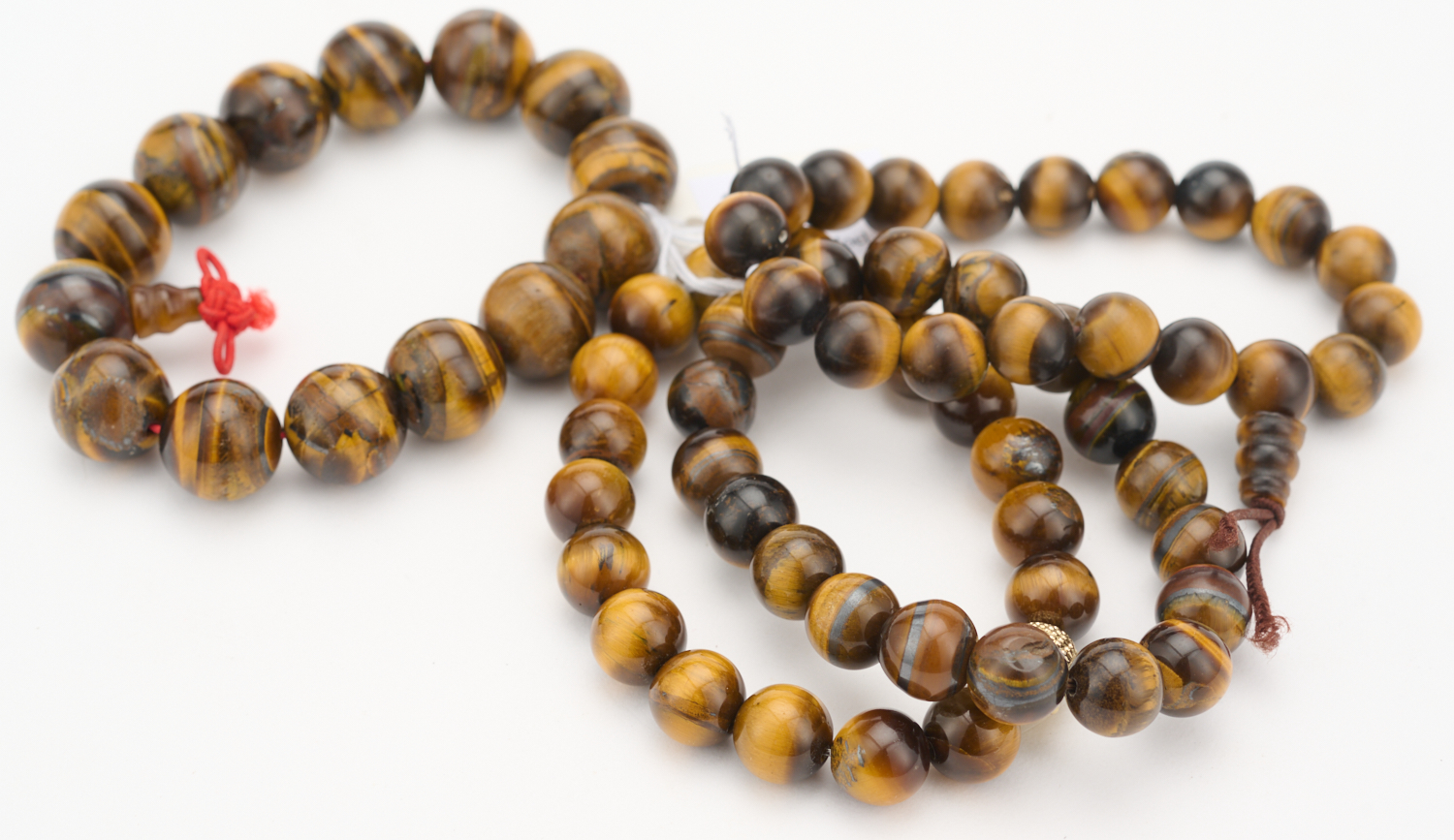 A COLLECTION OF FOUR TIGERS EYE ELASTICISED BRACELETS