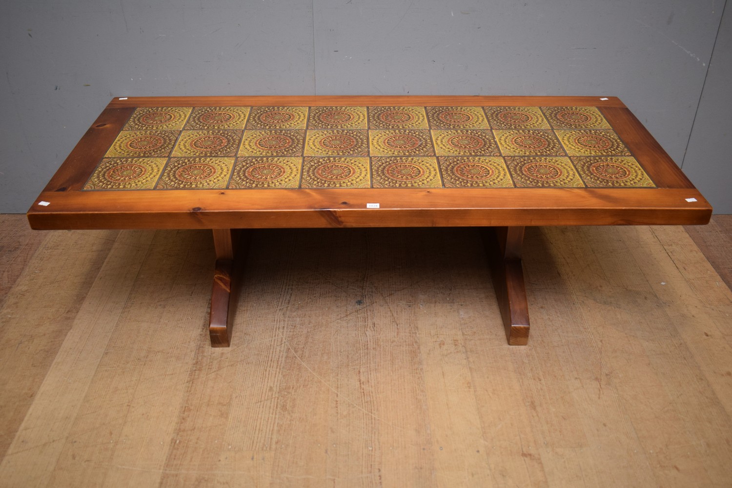 AN AUSTRALIAN MID-CENTURY TILE TOPPED COFFEE TABLE (40H x 143W x 64D CM) (LEONARD JOEL DELIVERY SIZE: LARGE)