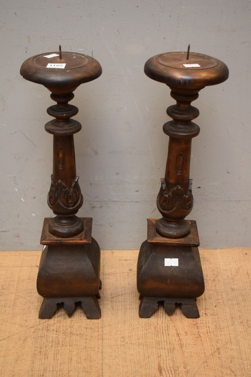TWO TURNED AND CARVED TIMBER CANDLESTICKS (43H CM) (LEONARD JOEL DELIVERY SIZE: SMALL)