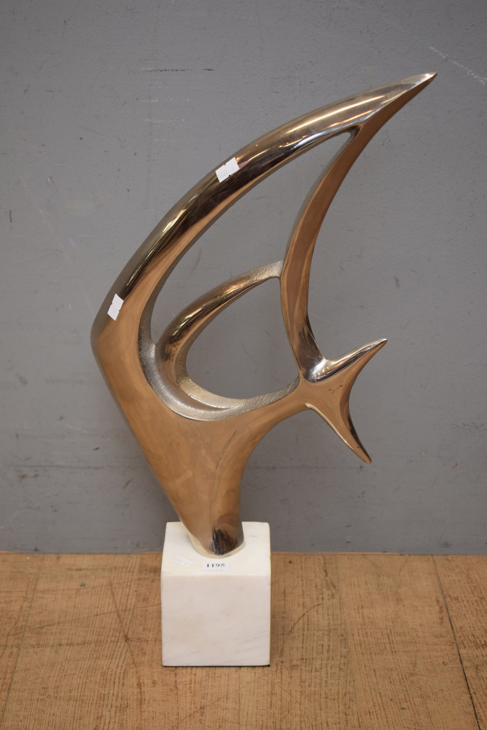 A STYLISED FISH SCULPTURE, METAL ON STONE (58H CM) (LEONARD JOEL DELIVERY SIZE: MEDIUM)