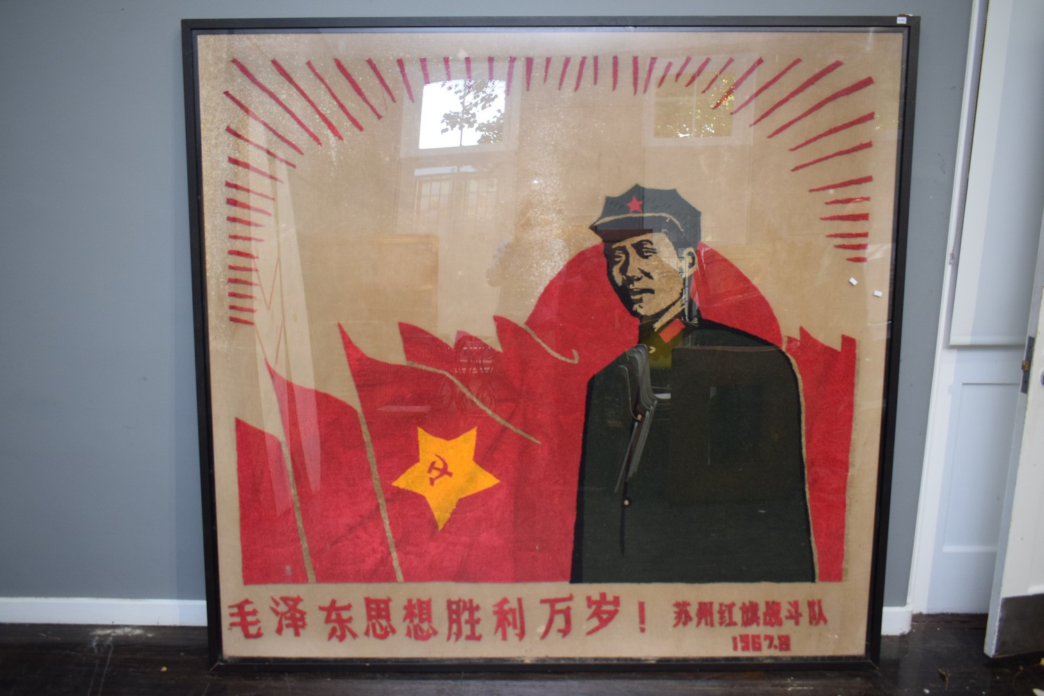 A TEXTILE PROPAGANDA ARTWORK OF MAO, OVERALL FRAMED SIZE 201 X 214CM (PLEASE NOTE THIS HEAVY ITEM MUST BE REMOVED BY CARRIERS AT THE CUSTOMER'S EXPENSE. LEONARD JOEL STAFF CANNOT ASSIST CARRYING THIS ITEM) (X-LARGE ITEM)