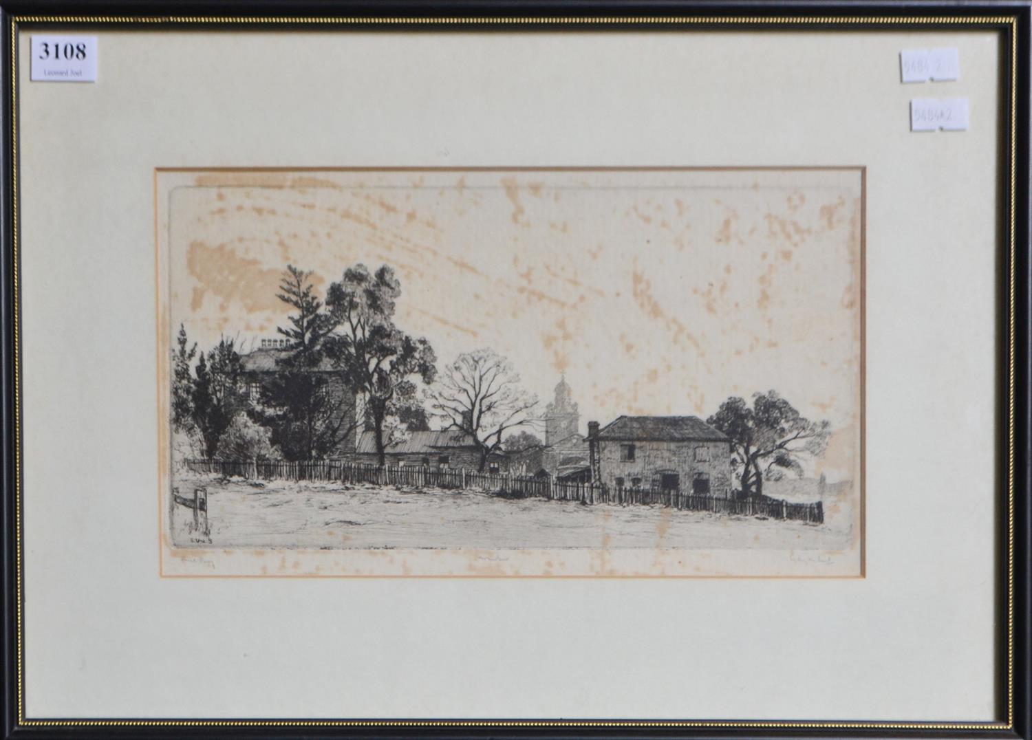 SYDNEY URE SMITH, TOWN, ETCHING, 14 X 26CM, CONDITION: WORK IS IN FAIR CONDITION, WITH DISCOLOURATION ACROSS THE ENTIRETY OF WORK, POSSIBILY COMING FROM VERSO. THE WORK HAS NOT BEEN INSPECTED OUTSIDE FRAME