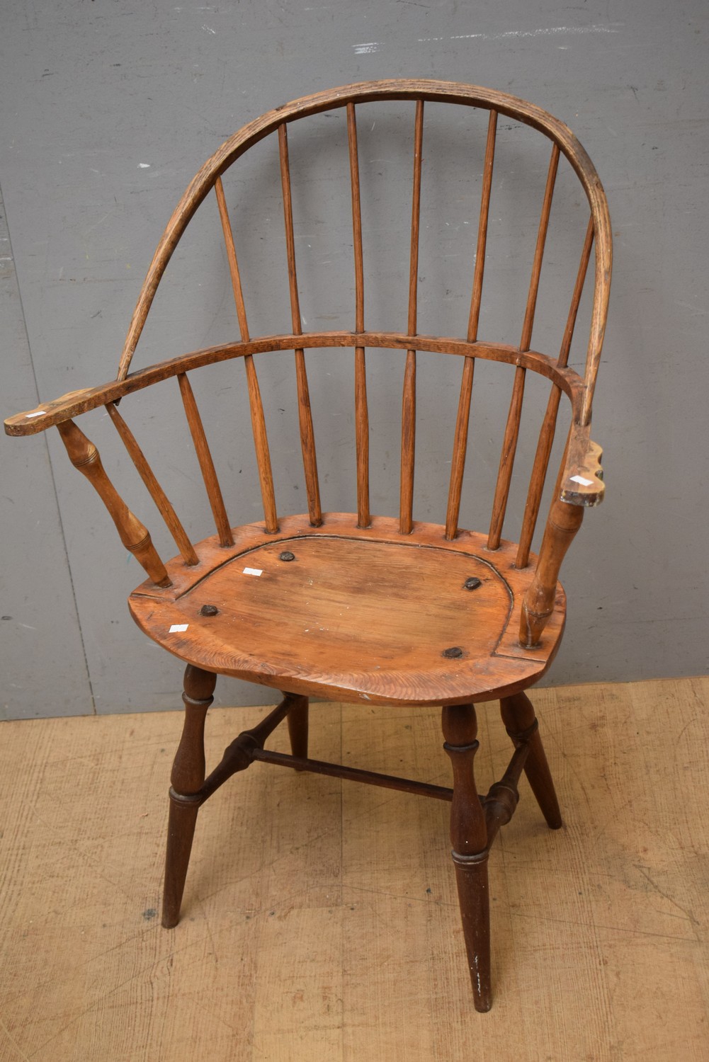 SUPERB EARLY 19TH CENTURY GEORGIAN PINE SPINDLEBACK WINDSOR CHAIR (H95 X W69 X D54 CM) (LEONARD JOEL DELIVERY SIZE: MEDIUM)