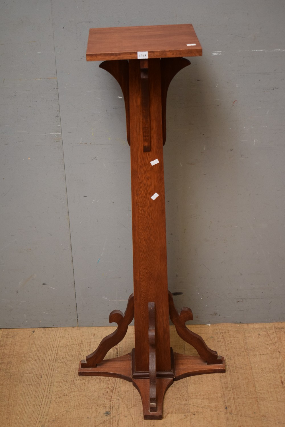 A SUPERB AUSTRALIAN 1920S HARDWOOD DECO ARTS AND CRAFT PEDESTAL WITH SPLAYED FEET AND COLUMN DETAIL (A/F) (H109 X W48 X D48 CM) (LEONARD JOEL DELIVERY SIZE: MEDIUM)