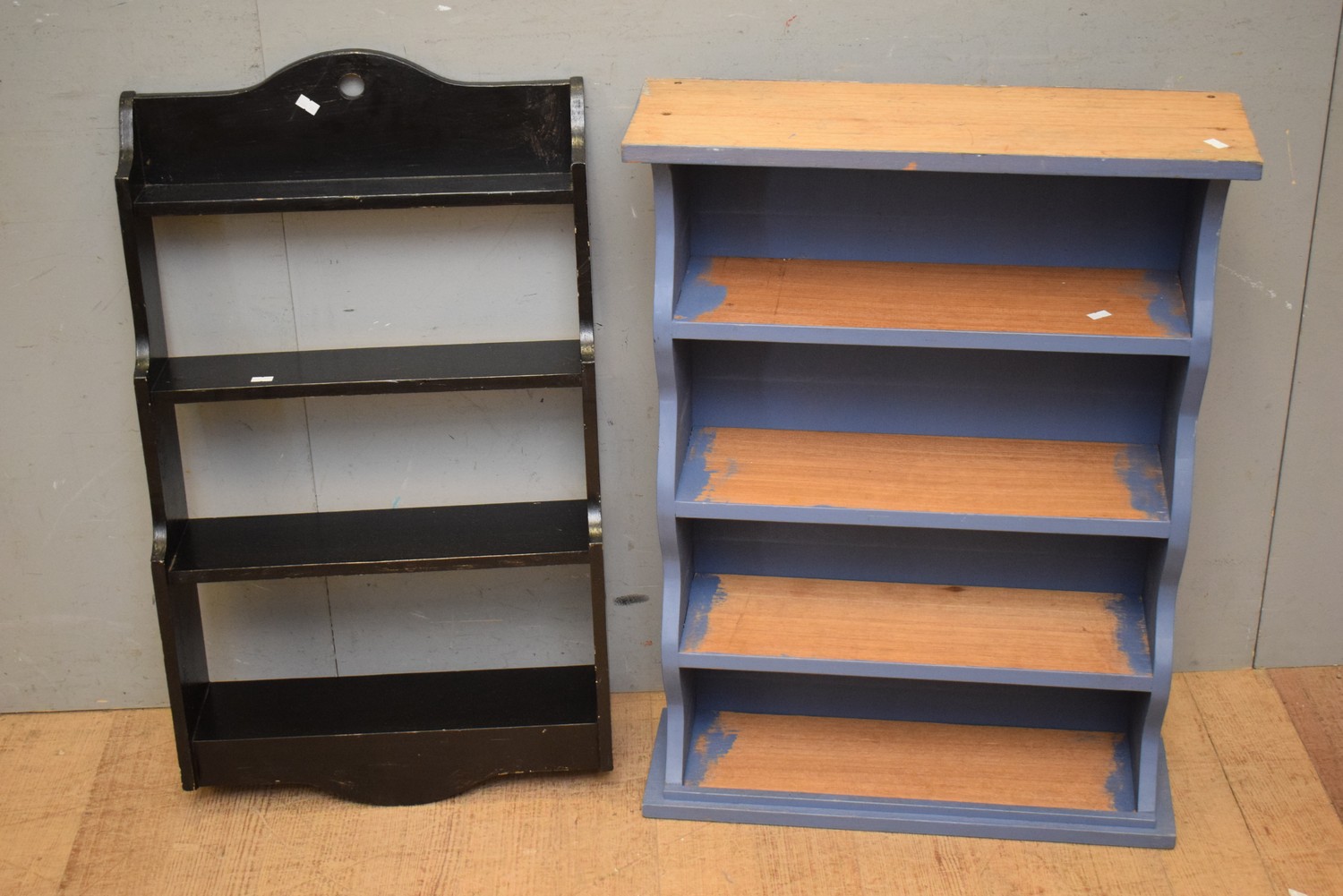 TWO 1950S AUSTRALIAN MADE SOLID WOOD PAINTED WALL SHELVES (H77 X W58 X D19 CM) (LEONARD JOEL DELIVERY SIZE: MEDIUM)