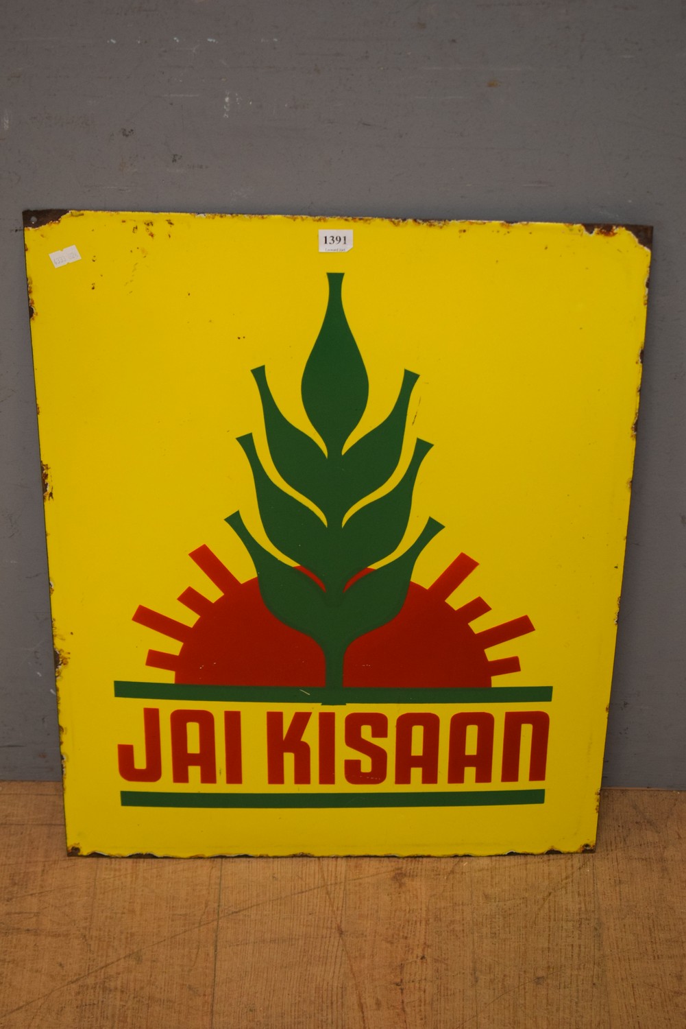 AN ENAMEL JAI KISAAN SIGN - YELLOW GREEN AND RED (62H x 46W CM) (LEONARD JOEL DELIVERY SIZE: MEDIUM)