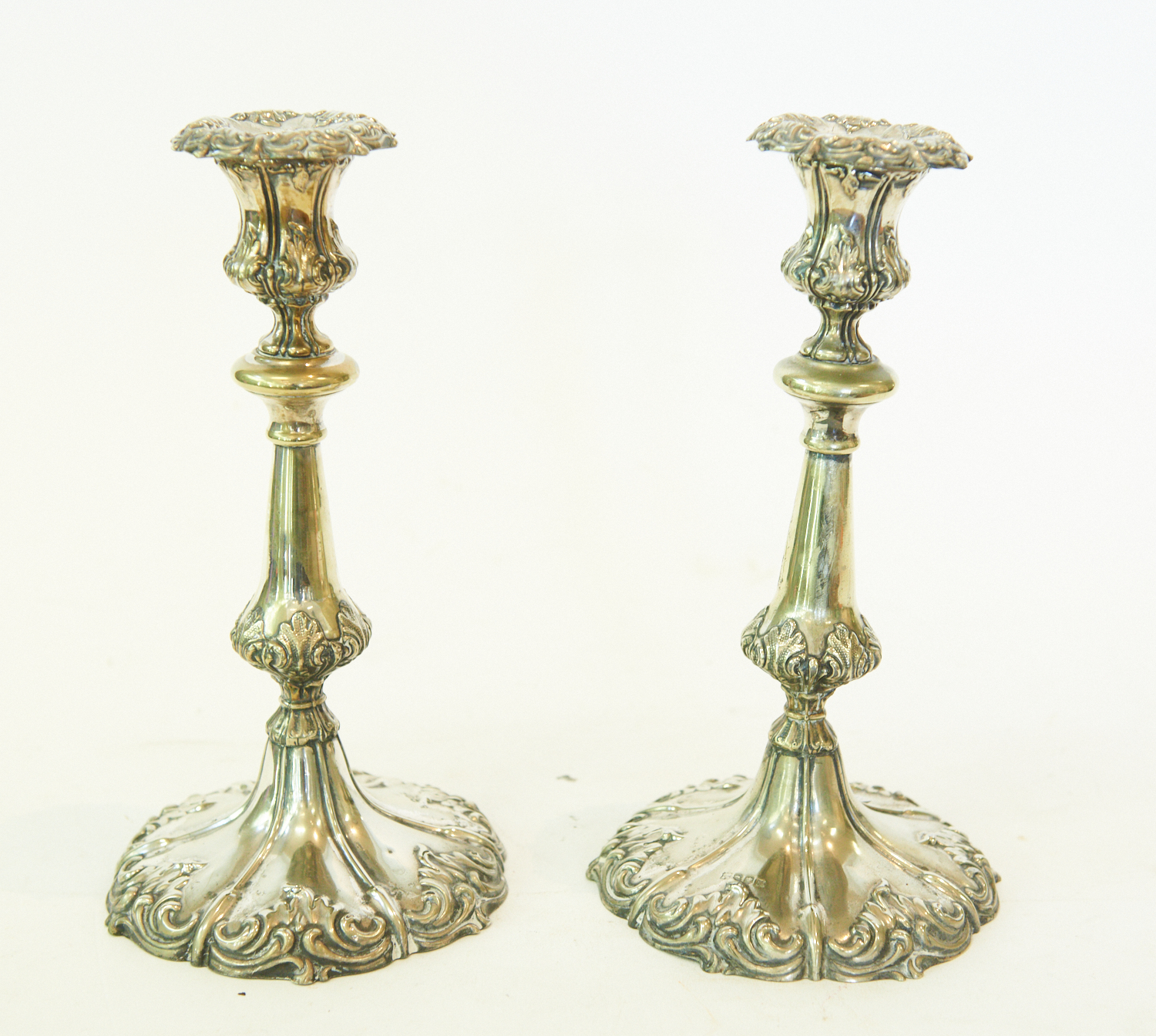 VICTORIAN SILVERPLATE CANDLESTICKS (26 CM H), LEONARD JOEL LOCAL DELIVERY SIZE: SMALL