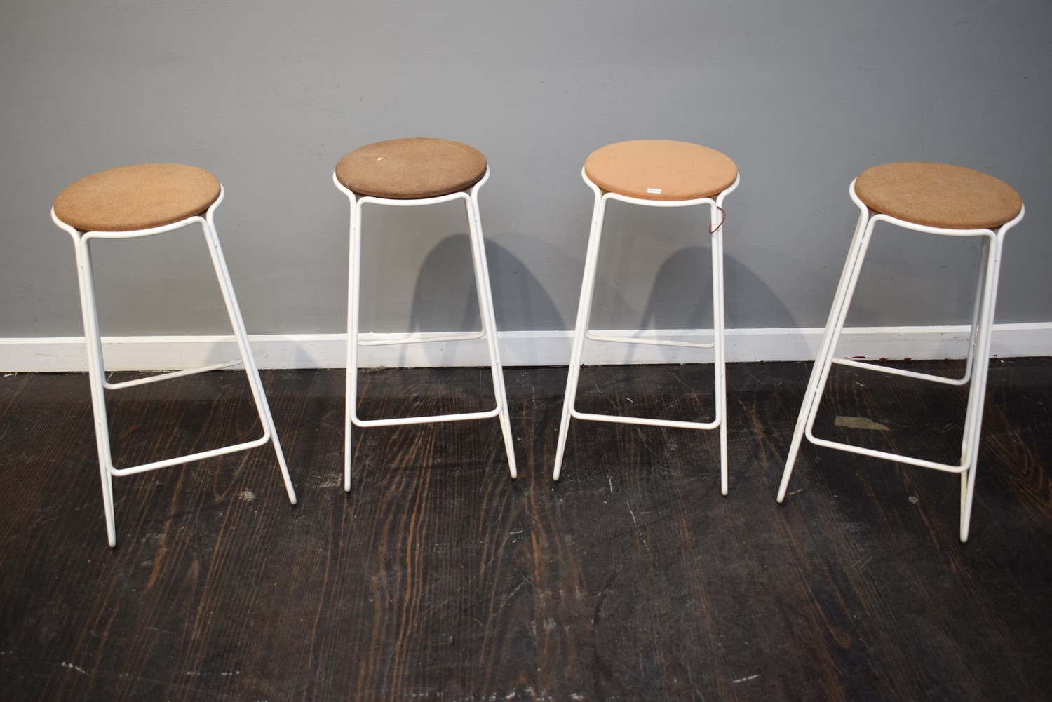 A SET OF FOUR OXDENMARQ METAL AND CORK BAR STOOLS (71 CM H)
