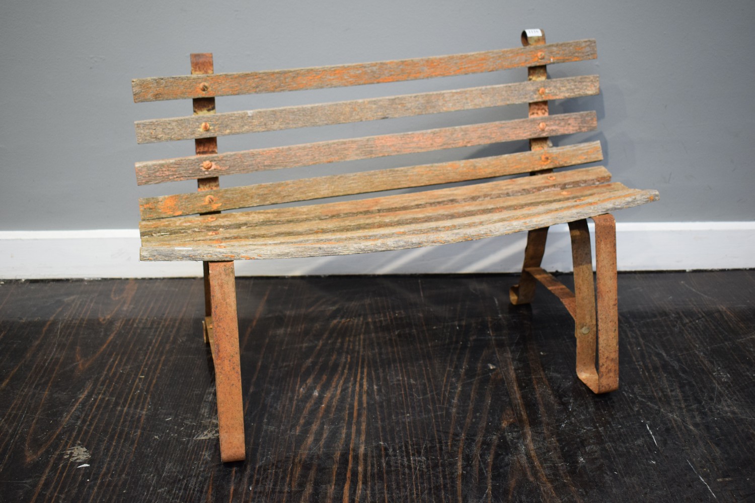 A MINIATURE OUTDOOR BENCH SEAT (A/F) (48H X 75W X 37D CM)