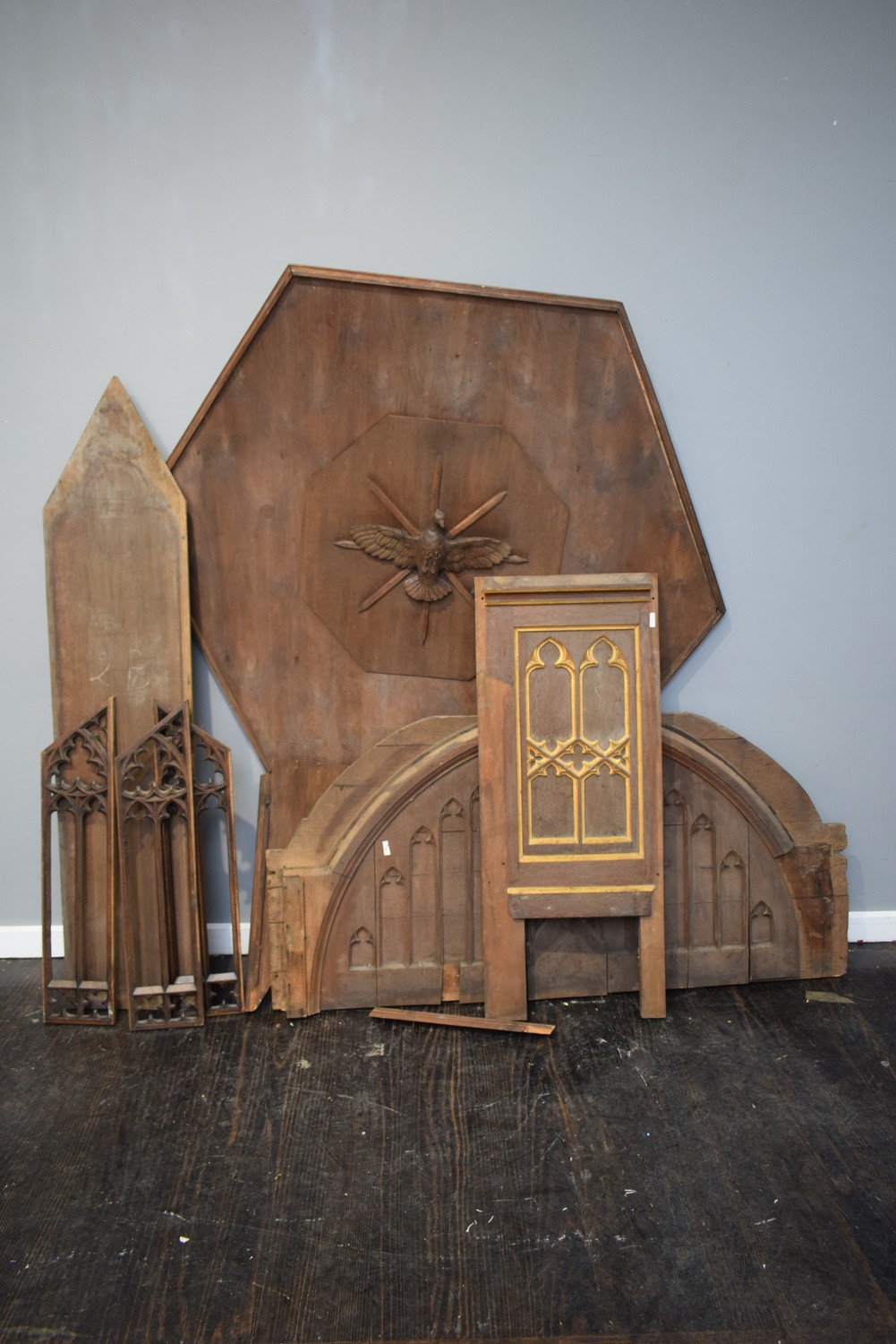 A COLLECTION OF LITURGICAL ARCHITECTURAL CARVED TIMBER PANELS (A/F)