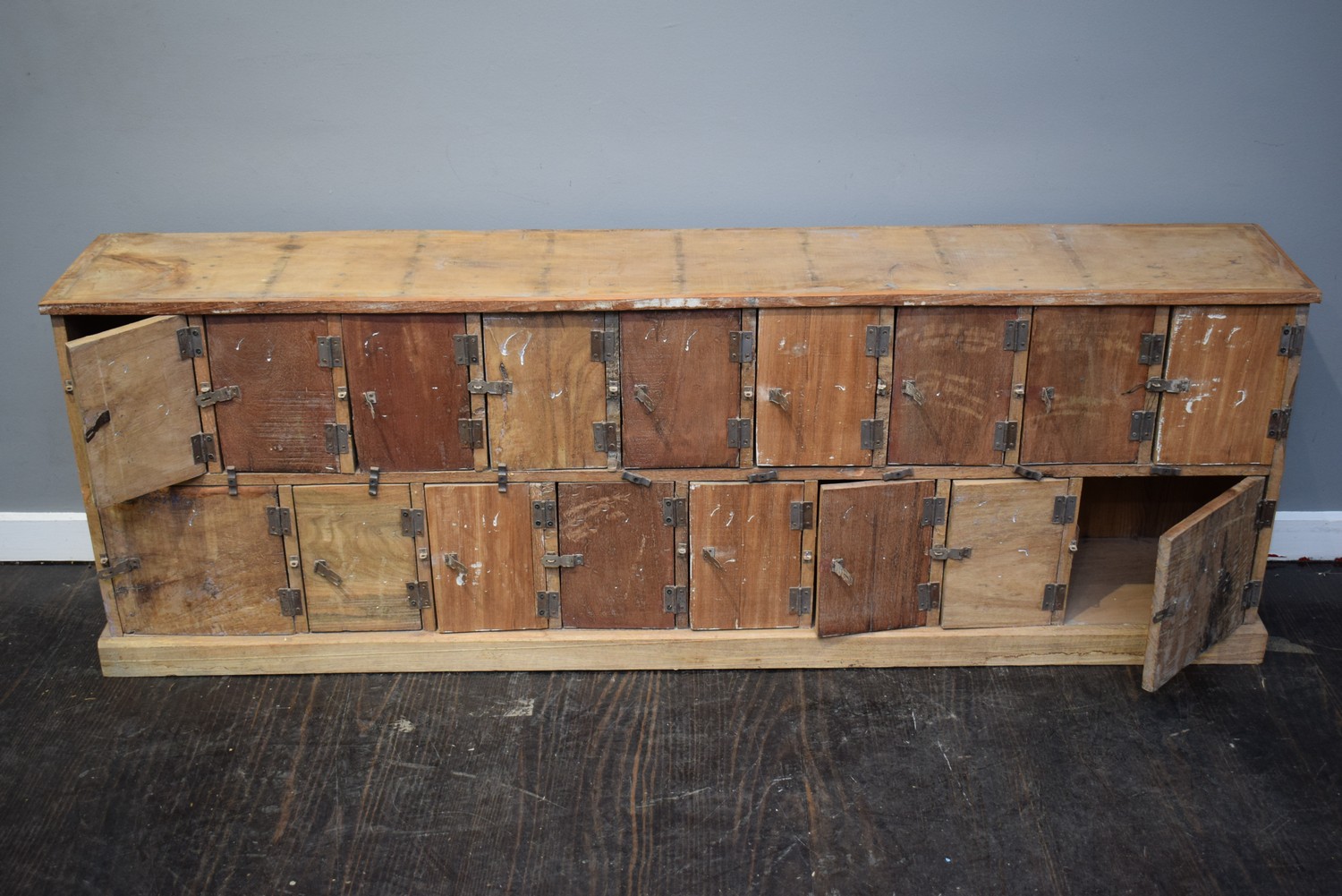 A JAPANESE SET OF SEVENTEEN LOCKERS (A/F) (66H X 193W X 32D CM)