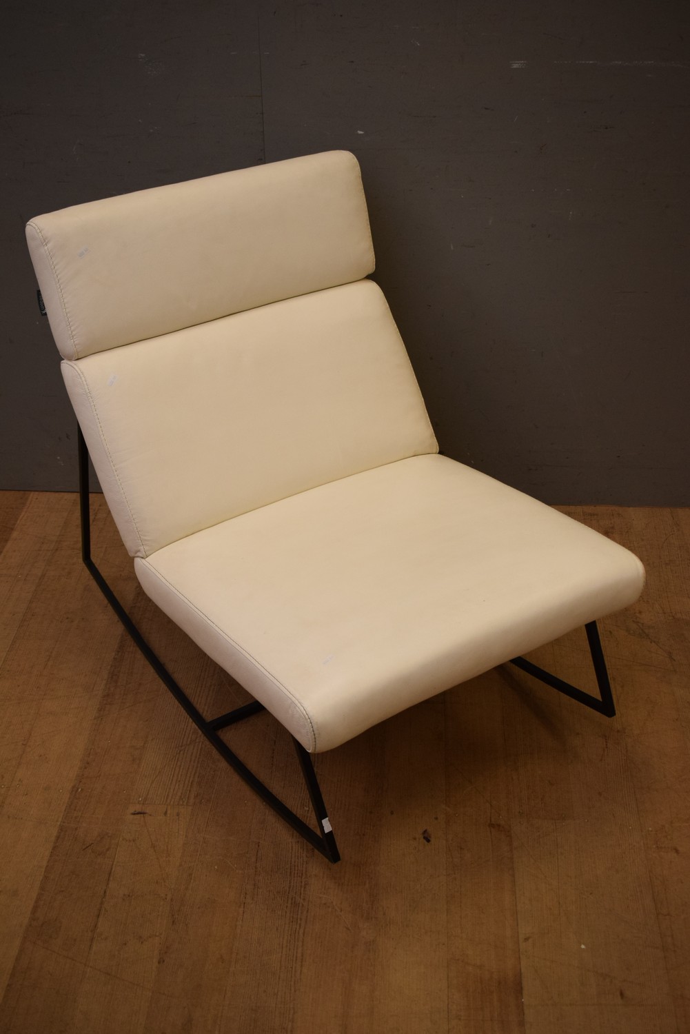 A WHITE LEATHER ROCKER BY FREEDOM (H85 X W64 X D98 CM) (LEONARD JOEL DELIVERY SIZE: LARGE)