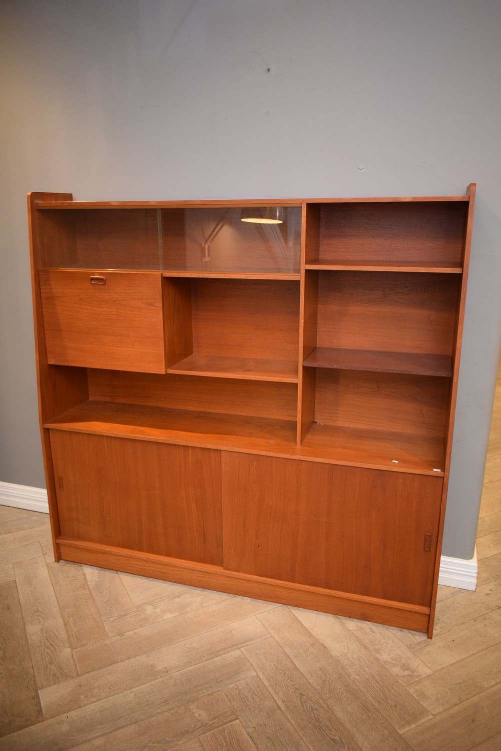 A SUBSTANTIAL MID-CENTURY SIDEBOARD/DISPLAY CABINET (A/F) (178H x 181W x 40D CM) (PLEASE NOTE THIS HEAVY ITEM MUST BE REMOVED BY CARRIERS AT THE CUSTOMER'S EXPENSE. LEONARD JOEL STAFF CANNOT ASSIST CARRYING THIS ITEM) (X-LARGE ITEM)