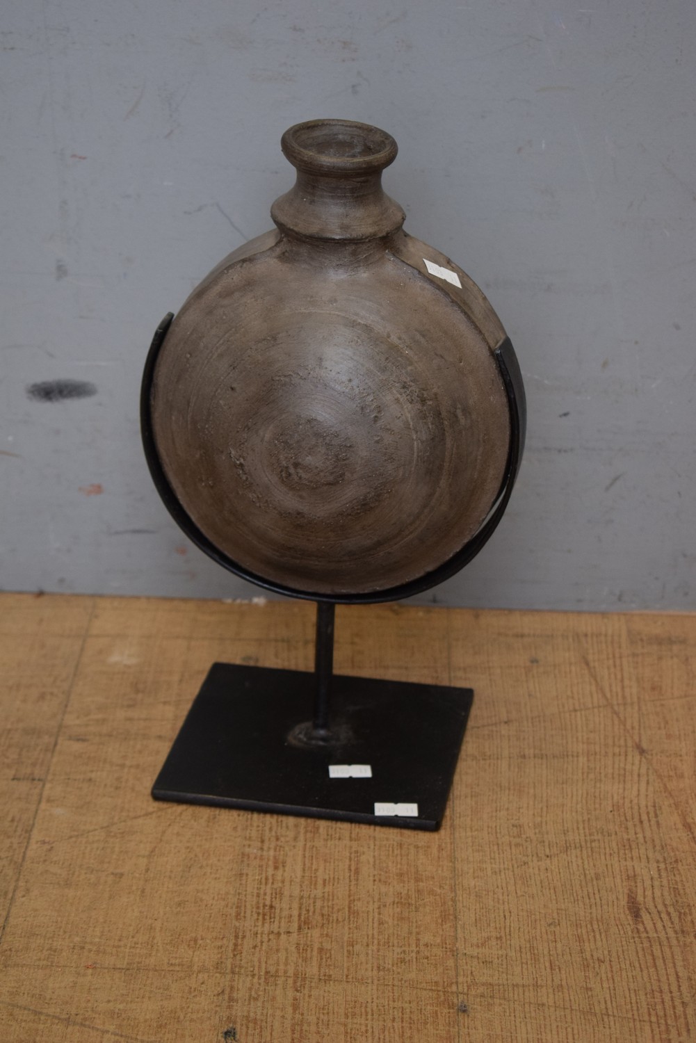 A LARGE CLAY FLASK ON BESPOKE STAND (34H CM) (LEONARD JOEL DELIVERY SIZE: MEDIUM)