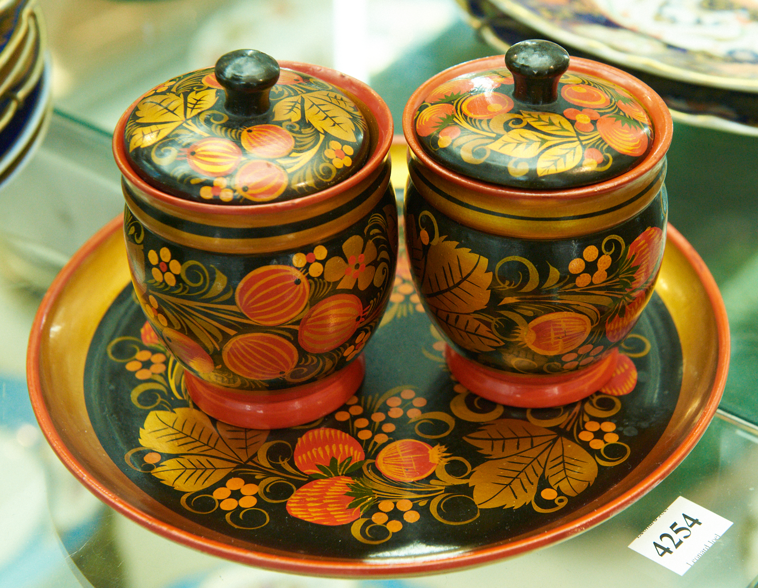 A HAND PAINTED RUSSIAN CONDIMENT SET, LEONARD JOEL LOCAL DELIVERY SIZE: SMALL