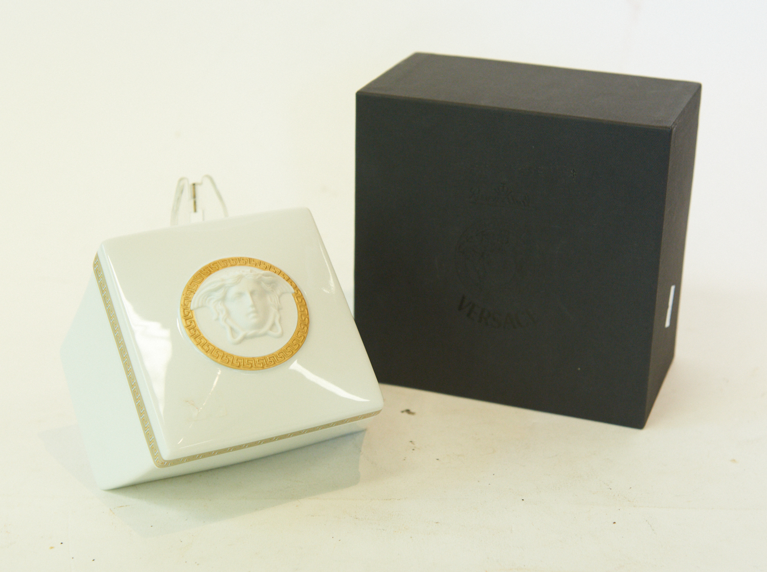 A VERSACE FOR ROSENTHAL LIDDED 'GORGONA' BOX W.13CM, LEONARD JOEL LOCAL DELIVERY SIZE: SMALL