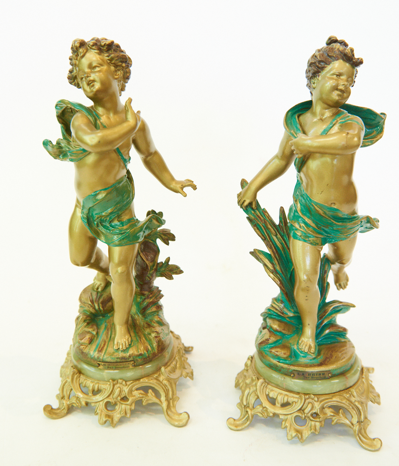 A PAIR OF COLD PAINTED FIGURES SIGNED BRUCHON, ENTITLED LA BRISSE AND LA RUISSEAU H.37CM, LEONARD JOEL LOCAL DELIVERY SIZE: SMALL