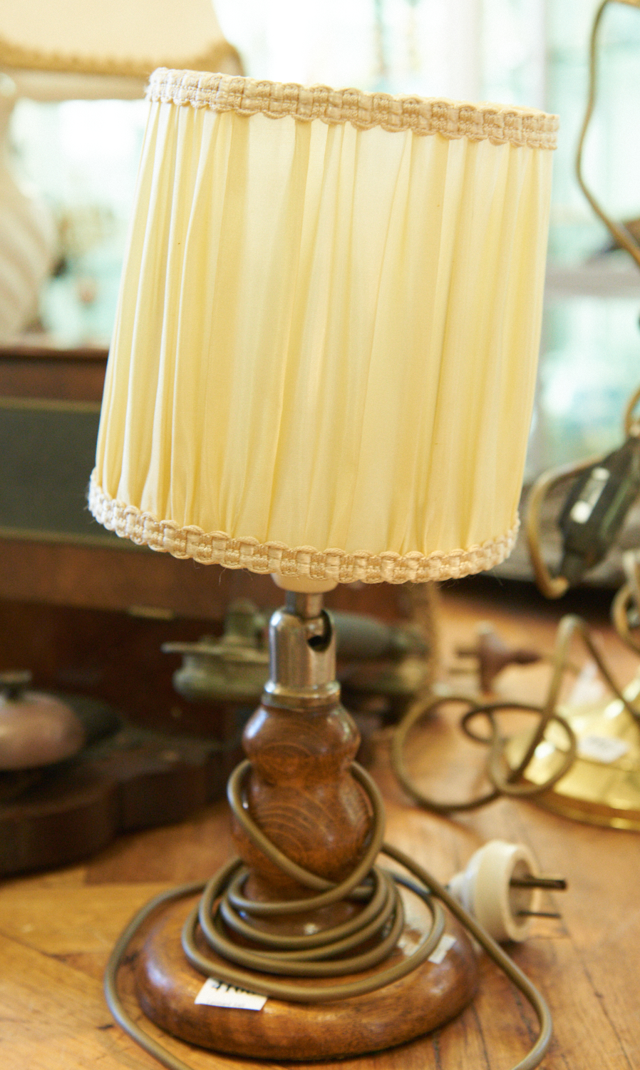 A VINTAGE LAMP WITH TURNED WOODEN BASE H.35CM, LEONARD JOEL LOCAL DELIVERY SIZE: SMALL