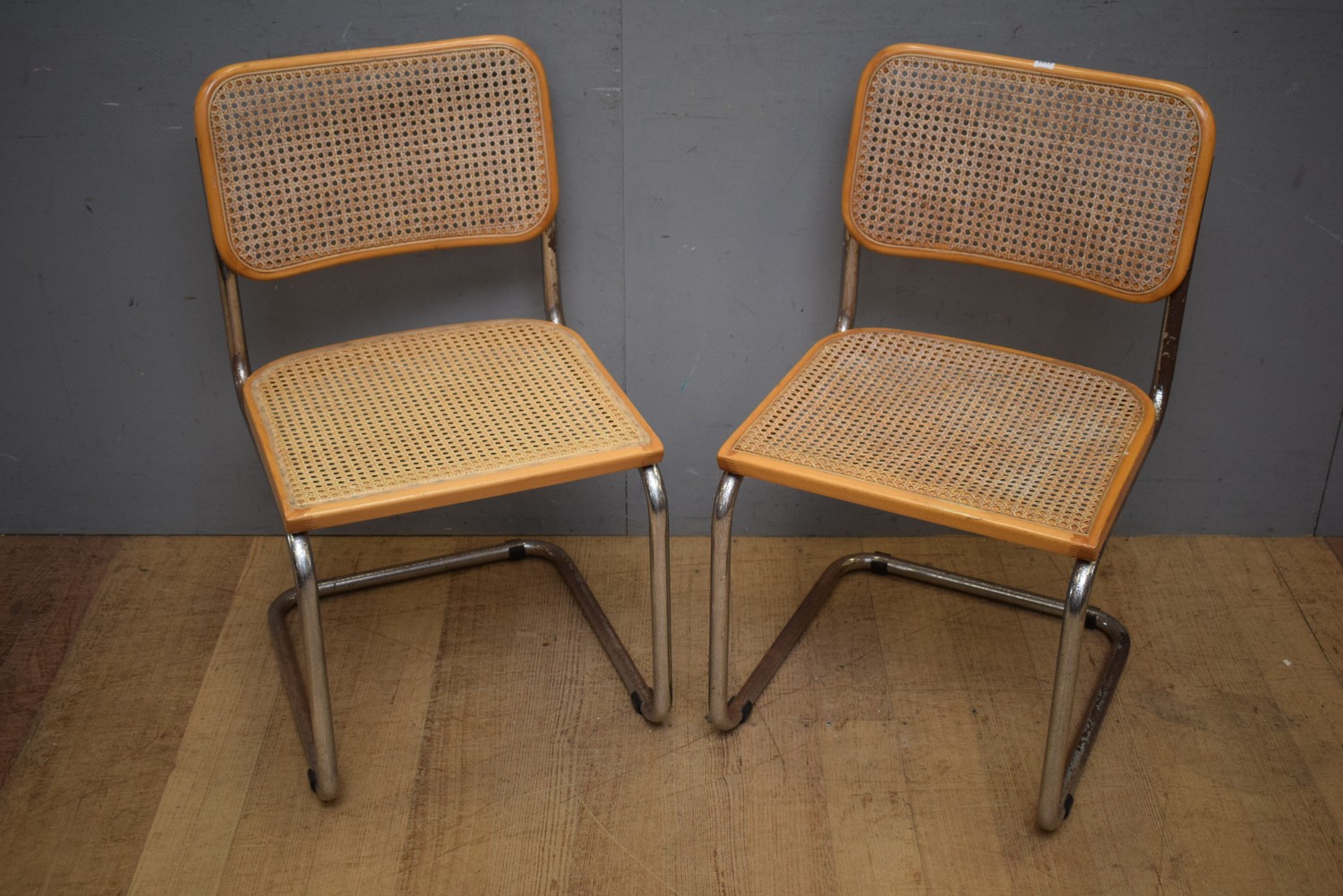 A PAIR OF RETRO METAL AND WICKER CHAIRS (A/F) (83H x 47W x 52D CM) (LEONARD JOEL DELIVERY SIZE: MEDIUM)