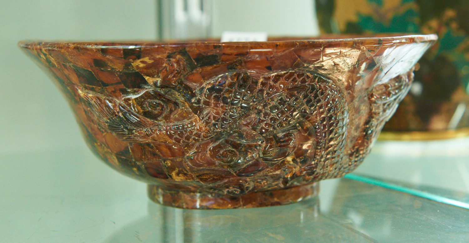 A CHINESE AMBER MOSAIC BOWL (20 CM D), LEONARD JOEL LOCAL DELIVERY SIZE: SMALL